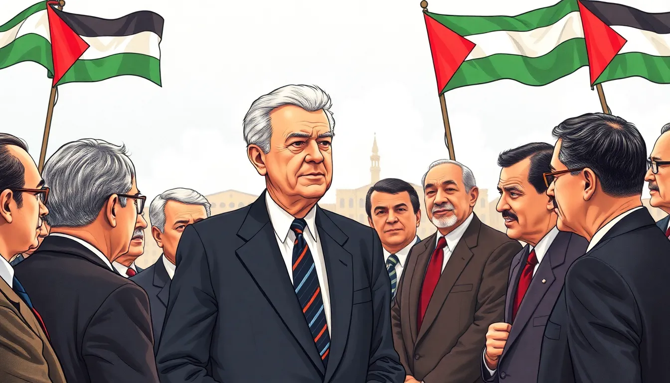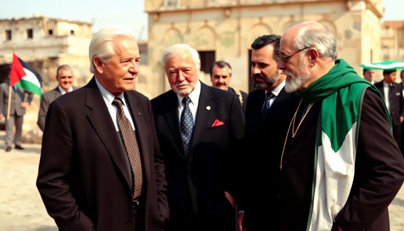 The composition captures Carter surrounded by Palestinian leaders against iconic landmarks. This setting emphasizes both context and culture, integrating historic sites with contemporary political dialogue. Vivid colors enhance the imagery, presenting a stark contrast between the officials’ expressions and the backdrop. Strategic framing directs attention to Carter’s engagement with the local figures, showcasing a sense of unity amidst complexity. Such visual elements facilitate a powerful narrative regarding peace efforts, inviting viewers to reflect on the significance of that moment in time.